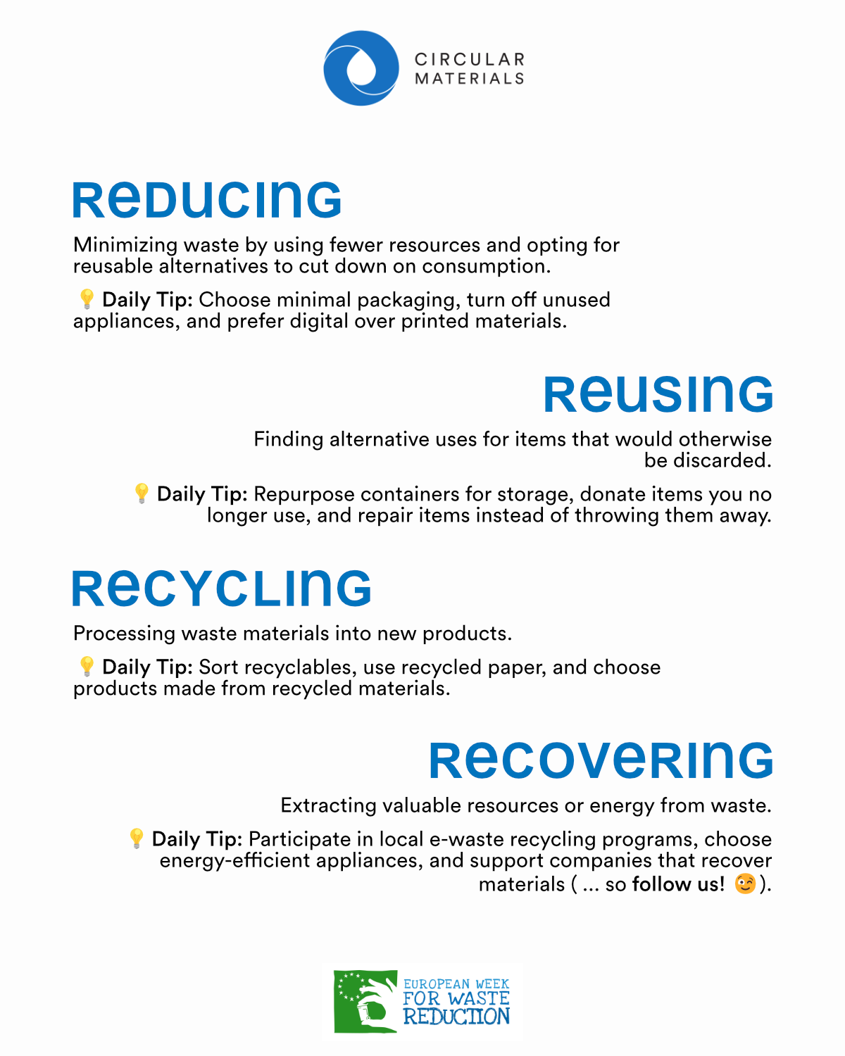 The EWWR reminds us that every action counts, from individual habits to large-scale industrial practices. At Circular Materials, we believe in the power of collaboration. Our work is a testament to what’s possible when industries, policymakers, and communities come together to tackle waste and resource inefficiency.